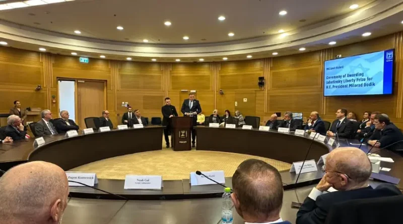 Dodiku je danas u Knesetu uručeno priznanje “Žabotinski za slobodu” za doprinos razvoju odnosa Izraela i Srpske i razumijevanje problema jevrejskog naroda.