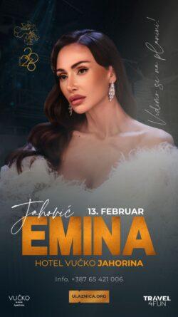 Kako publika u Sarajevu i okolini ne bi ostala uskraćena za još jedan nastup Emine Jahović, ona će 13. februara nastupiti na Jahorini, u hotelu „Vučko“.