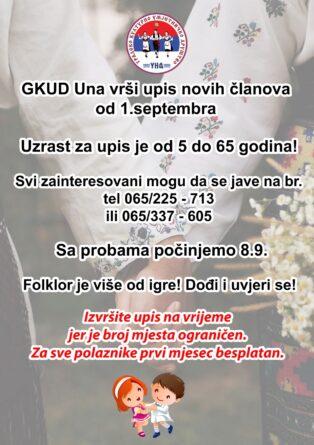 GKUD “Una” vrši upis novih članova uzrasta od 5 do 65 godina od 1. septembra.