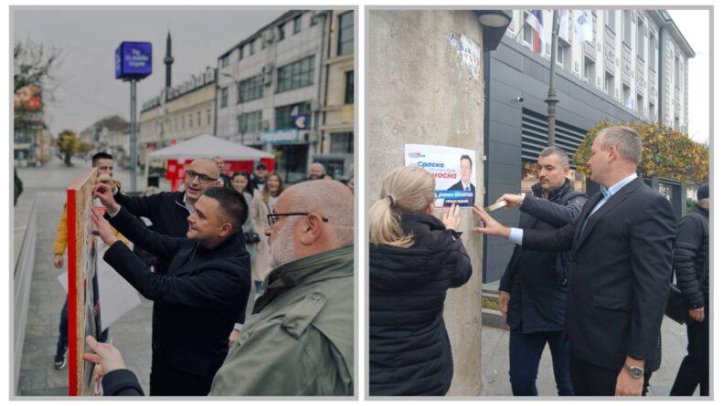 Početak predizborne kampanje za prijevremene izbore za predsjednika Republike Srpske lijepljenjem prvog plakata u Kozarskoj Dubici ispred zgrade Opštine jutros