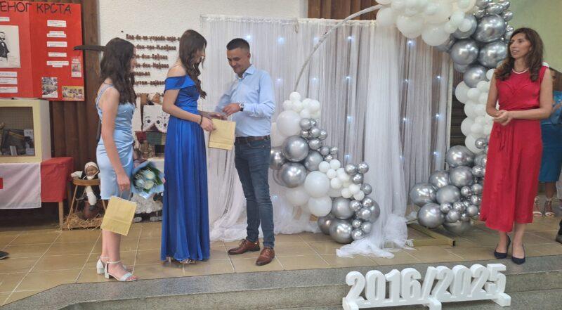 Direktor škole Bojana Krnjajić zahvalila se načelniku opštine koji je finansijski pomogao organizaciju maturske večeri za 12 učenika završnih razreda iz centralne škole I pet iz škole u Međuvođu.