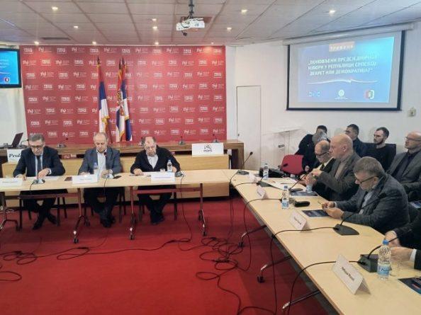 Tribina “Ponovljeni predsjednički izbori u Republici Srpskoj: dekret ili demokratija” održana je u Pres-centru UNS-a u Beogradu.
