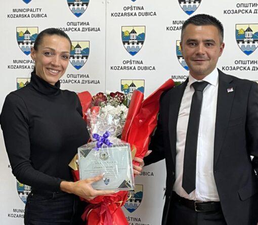 Načelnik opštine Kozarska Dubica Igor Savković upriličio je danas prijem za hrabru i uspješnu Dubičanku Ivanu Uzelac, koja je ostvarila izvanredan takmičarski uspjeh na međunarodnom bodybuilding i fitness takmičenju „Jagodina open“ 2025.
