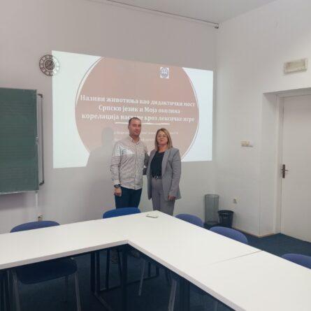 U svom radu pod naslovom „Nazivi životinja kao didaktički most: Srpski jezik i Moja okolina – korelacija nastave kroz leksičke igre“, prikazali su kako se kroz zabavne i edukativne leksičke igre mogu uspješno povezati nastavni sadržaji više predmeta, podstičući djecu na kreativno mišljenje i aktivno učešće u učenju.