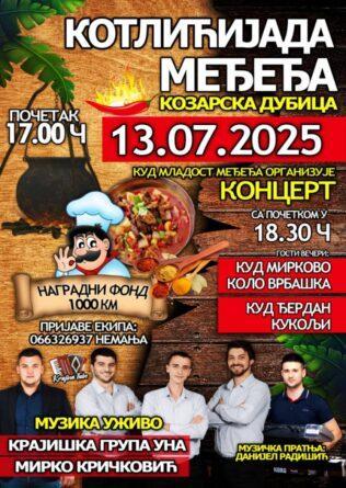 Obilježavanje slave sela biće nastavljeno u večernjim časovima koncertom KUD-a “Mladost”, “Kotlićijadom” u organizaciji Mjesne zajednice Međeđa i turnirom u malom fudbalu “Slobodan Bobo Vidović” u organizaciji Omladinskg fudbalskog kluba “Ravan”.