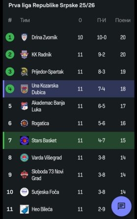 Pobjeda KK Una protiv Stars Basketa