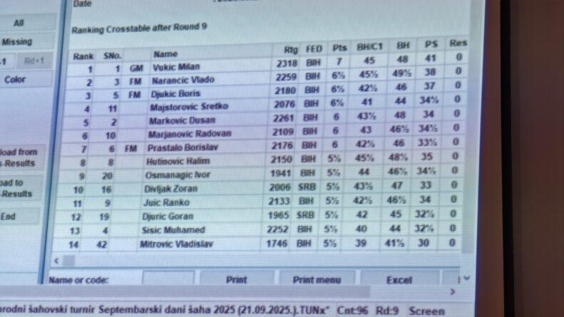 Pobjednik Prvog međunarodnog šahovskog turnira pod nazivom „Septembarski dani šaha“, koji je danas održan u hotelu Zepter, je Milan Vukić, iskusni velemajstor šaha koji je do sada u ovoj oblasti osvojio brojne titule.