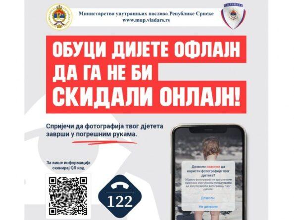 Ministarstvo unutrašnjih poslova Republike Srpske organizuje kampanju “Obuci dijete oflajn da ga ne bi skidali onlajn” s ciljem ukazivanja na opasnost objavljivanja fotografija nage i polunage djece na internetu i društvenim mrežama.
