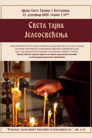 U hramu Svete Trojice u Kostajnici u nedjelju, 21.decembra služiće se Sveta tajna Jeleosvećenja.