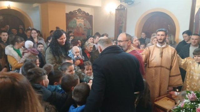U Crkvi Svetih apostola Petra i Pavla u Međeđi mališanima je danas podijeljeno 100 svetosavskih paketića koje je obezbijedila Narodna partija Srpske.