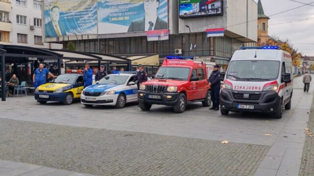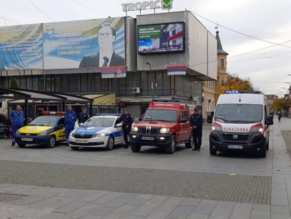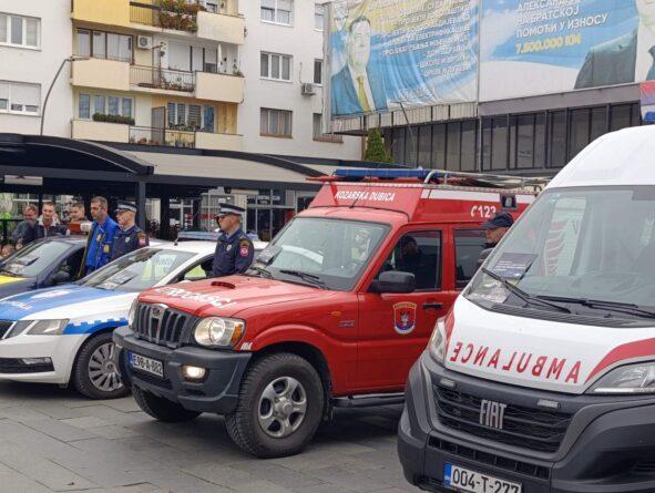 Na gradskom trgu ispred zgrade opštine ova aktivnost započela je paljenjem rotacionih svjetala i sirena, nakon čega su volonteri Crvenog krsta, učenici srednje škole izveli pokaznu vježbu pružanja prve pomoći licima povrijeđenim u saobraćajnim nezgodama, a prezentovano je i vozilo oštećeno u saobraćaju.