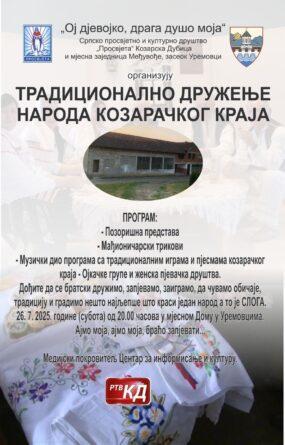 Pročitajte vijestSrpsko prosvjetno i kulturno društvo “Prosvjeta” Kozarska Dubica i Mjesna zajednica Međuvođe, zaseok Urmovci u subotu, 26. jula organizuju tradicionalno