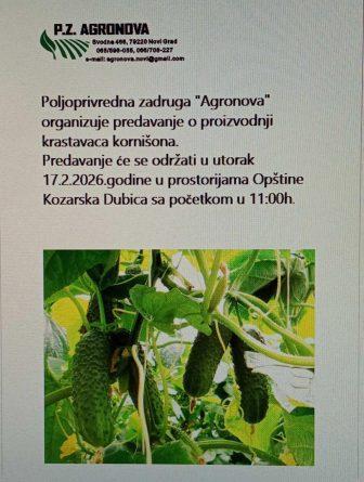 Pozivajući poljoprivredne proizvođače da se uključe u organizovanu kooperantsku proizvodnju krastavaca kornišona, iz Poljoprivredne zadruge „AGRO VIP“ Banjaluka obavještavaju da